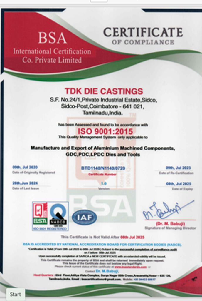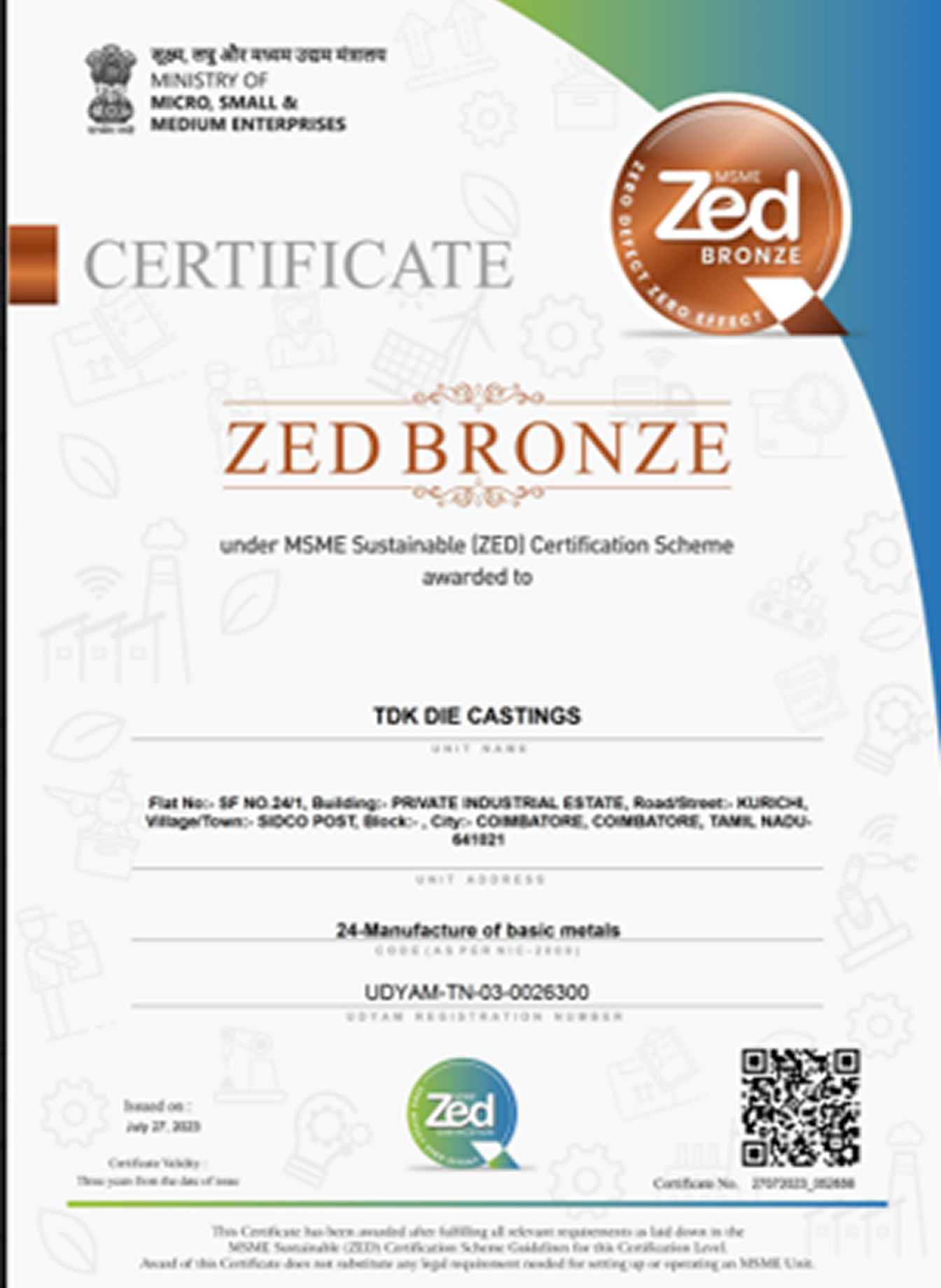 To provide precision-engineered die-cast components through advanced technology, quality excellence, and customer-centric solutions while promoting sustainability, efficiency, and continuous improvement in manufacturing processes.