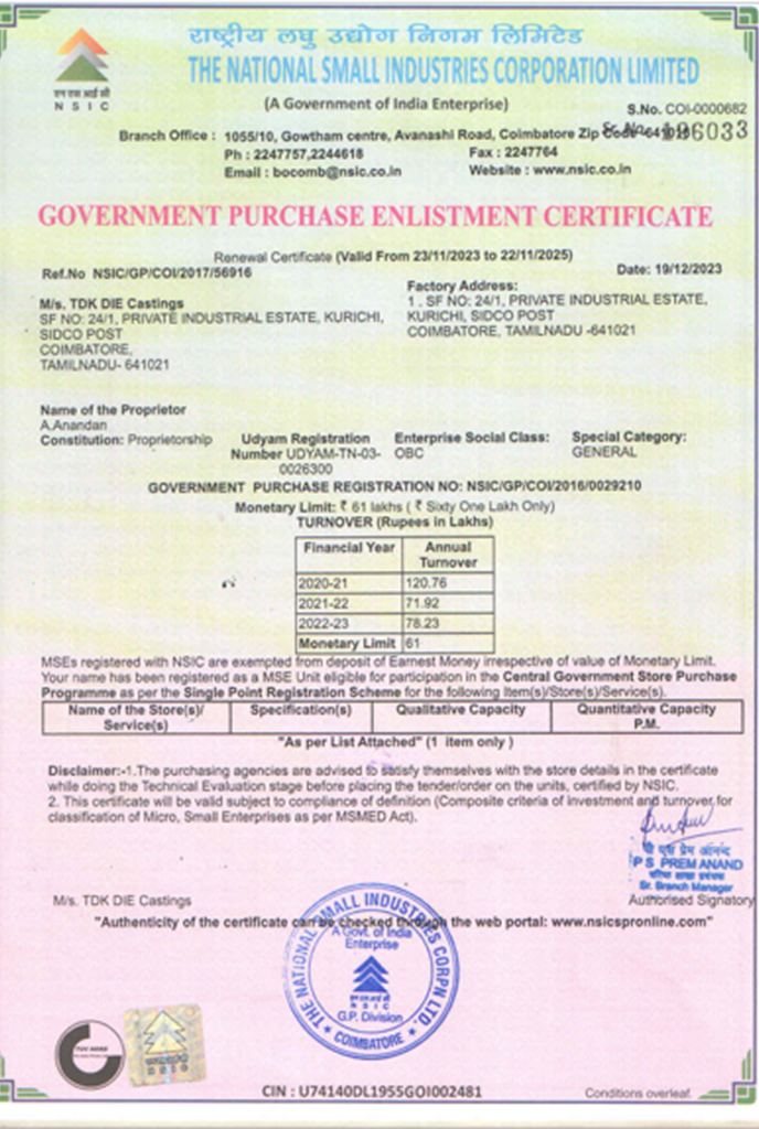 SIDCO ,Coimbatore-641021,Tamilnadu,India.